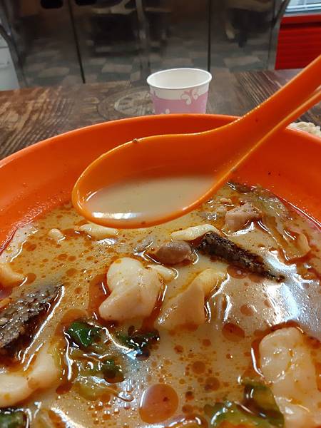 這家在內壢,文化路轉進去成章二街,常常經過卻沒機會試試,原以為是成都麻辣燙(網路資訊看見的),但是上桌後,乳白色的湯頭,很濃郁的大骨頭湯,好奇的請教店家,店家說這是東北麻辣燙,湯頭是牛骨和很多香料熬煮的,和一般常見的川式麻辣燙不同,更加濃郁!店裡有冷藏櫃,選幾樣菜然後和老闆選擇辣度,這家只是麻辣香味,所以適辣的朋友從中辣開始吧XD不過 他們家菜肉餛飩口味超棒,